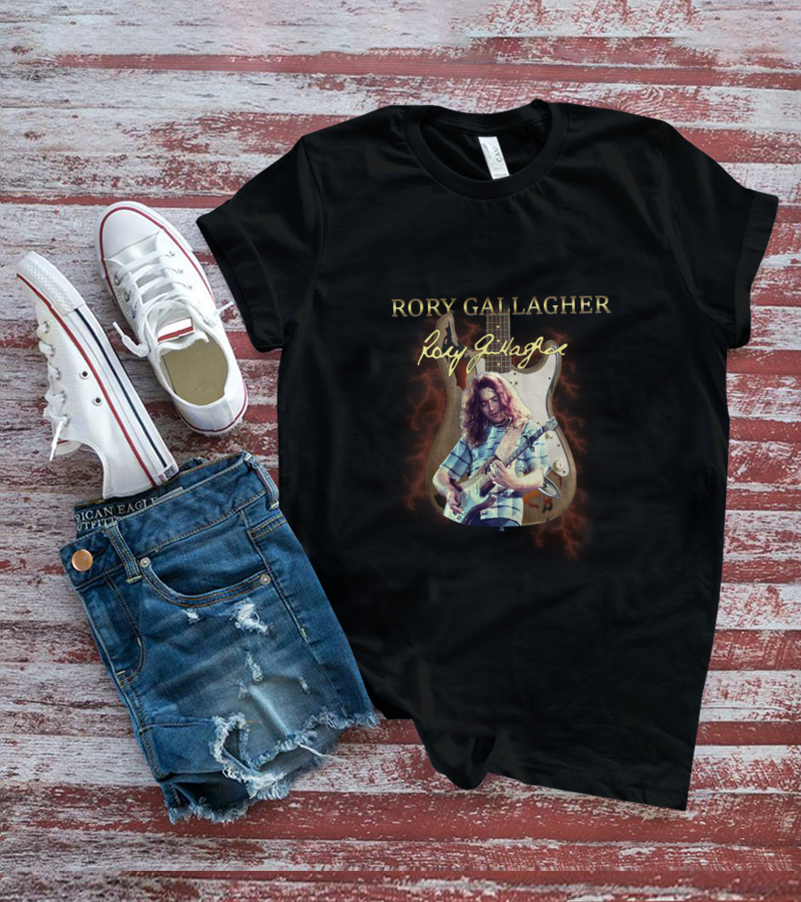 Rory Gallagher Signature Guitar With Lightning And Performer Image T-Shirt
