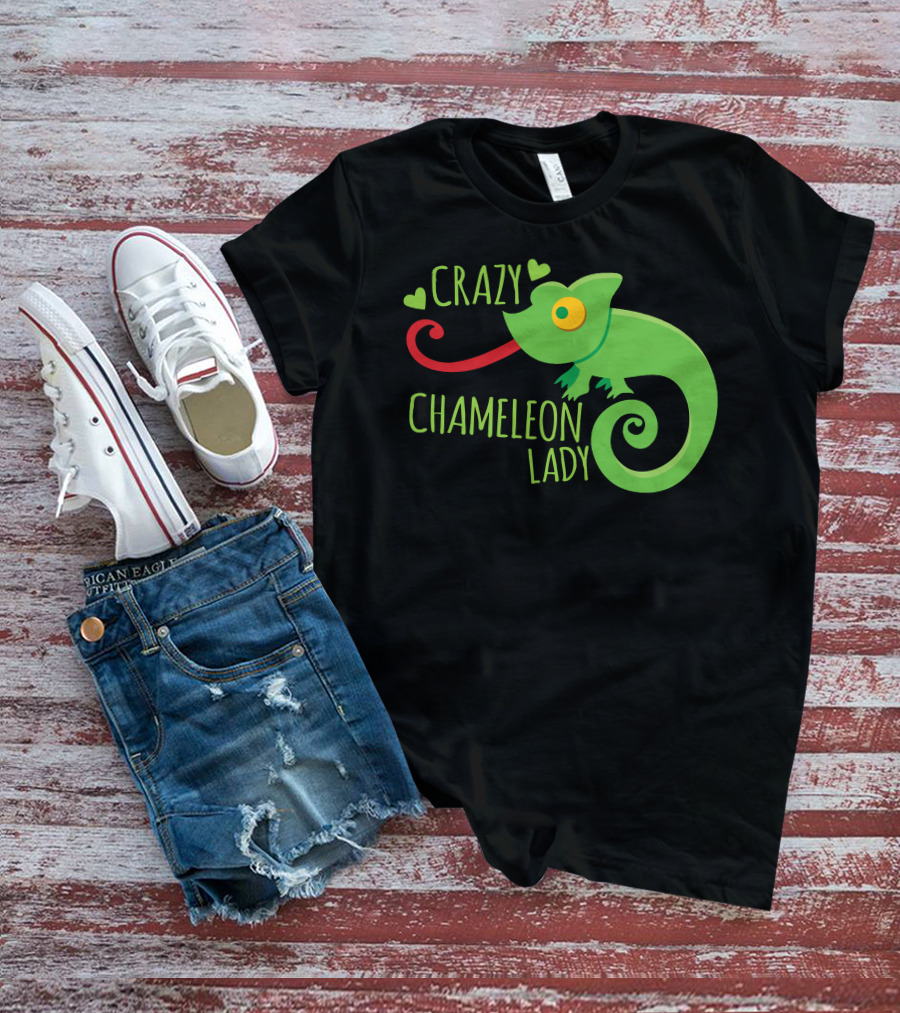 CRAZY CHAMELEON LADY Green Cartoon With Hearts T-Shirt