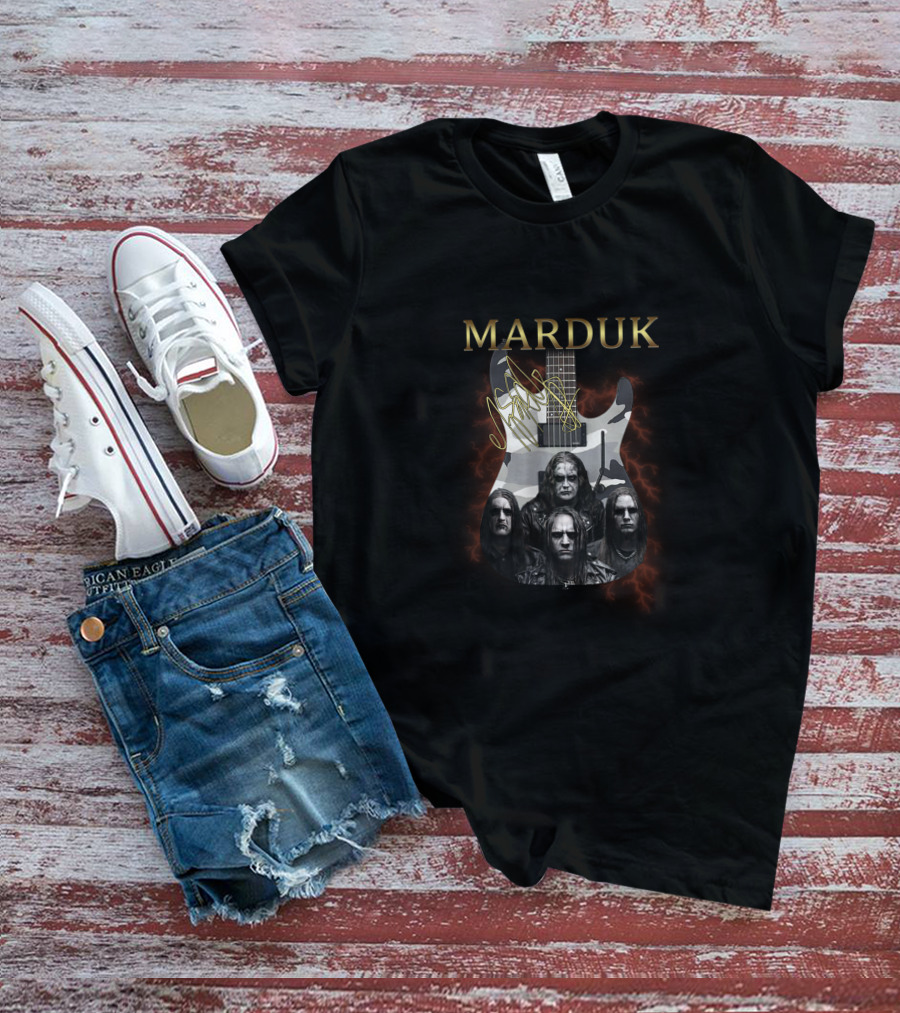 The Marduk Band with Signature Electric Guitar Shirt offers a regular fit. Made from 100% ring-spun cotton that is pre-shrunk to help maintain size and shape after washing. Features reinforced construction details for durability. Available in U.S. standard sizes S-5XL to accommodate various body types.