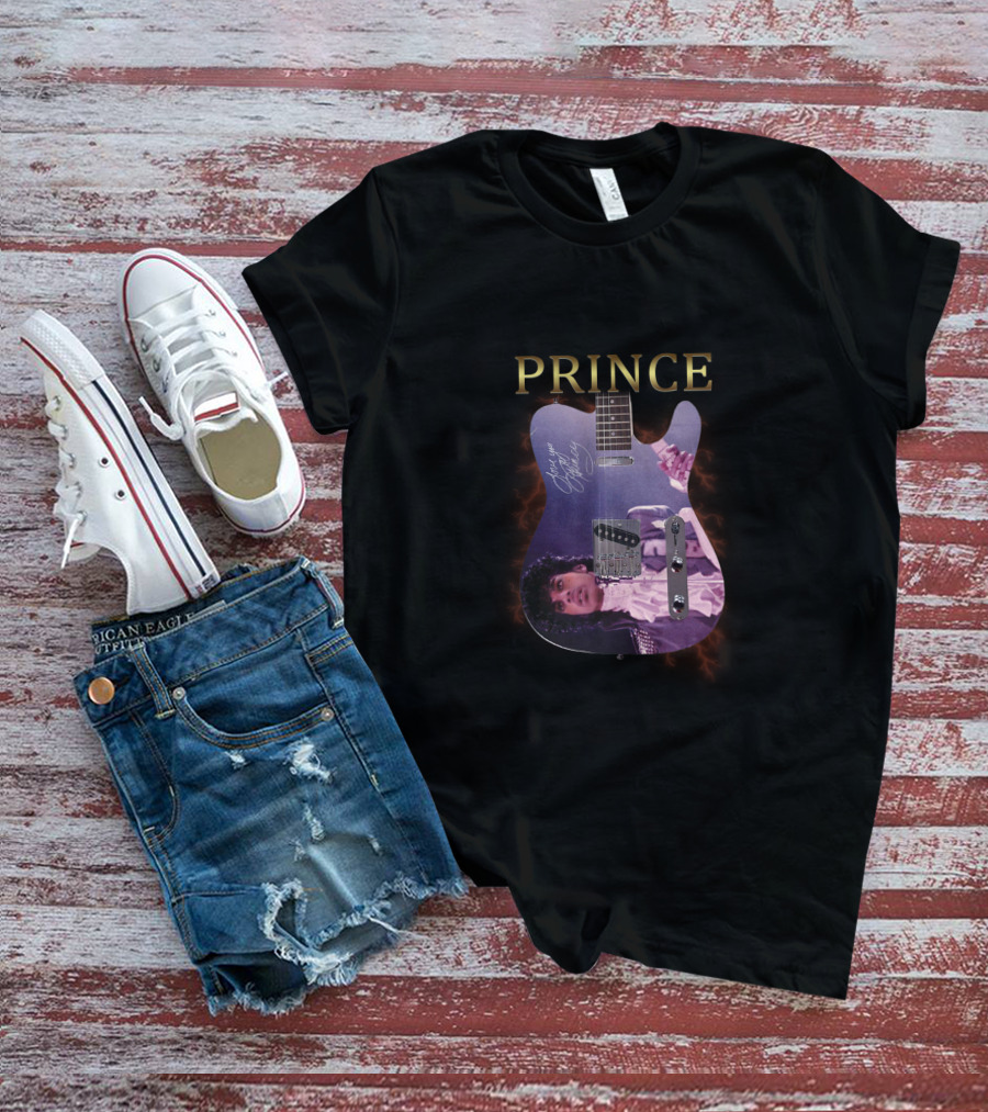 The Prince Signature Guitar with Iconic Image Shirt offers a regular fit. Made from 100% ring-spun cotton that is pre-shrunk to help maintain size and shape after washing. Features reinforced construction details for durability. Available in U.S. standard sizes S-5XL to accommodate various body types.