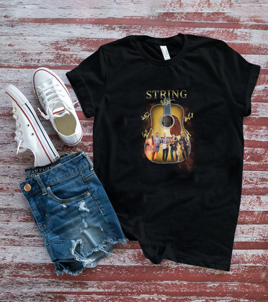 The STRING Signature Guitar Band Autographs Shirt offers a regular fit. Made from 100% ring-spun cotton that is pre-shrunk to help maintain size and shape after washing. Features reinforced construction details for durability. Available in U.S. standard sizes S-5XL to accommodate various body types.