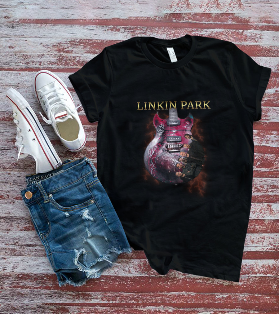 Linkin Park Signed Guitar With Band Members T-Shirt