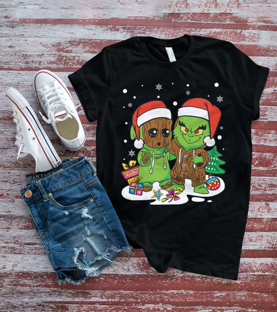 Only Today Christmas Tree Characters Santa Hats Snowflakes T-Shirt