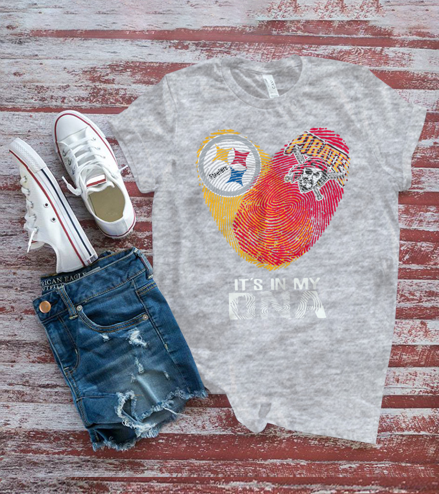 The Steelers Pirates It's In My Dna Fingerprint Heart Shirt offers a regular fit. Made from 100% ring-spun cotton that is pre-shrunk to help maintain size and shape after washing. Features reinforced construction details for durability. Available in U.S. standard sizes S-5XL to accommodate various body types.