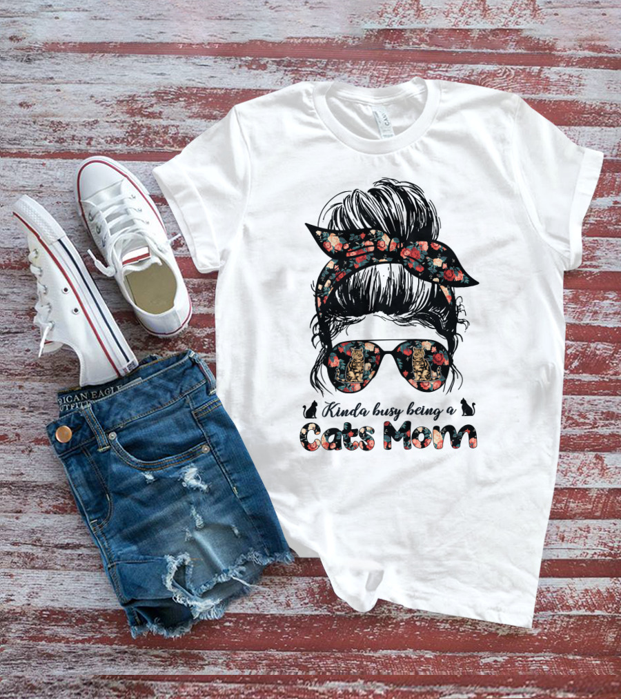 Kinda Busy Being A Cats Mom Messy Bun T-Shirt