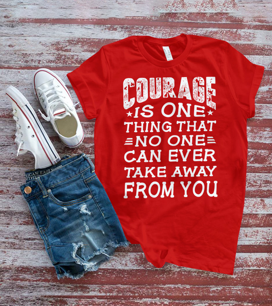 The Courage Is One Thing That No One Can Ever Take Away From You Shirt offers a regular fit. Made from 100% ring-spun cotton that is pre-shrunk to help maintain size and shape after washing. Features reinforced construction details for durability. Available in U.S. standard sizes S-5XL to accommodate various body types.