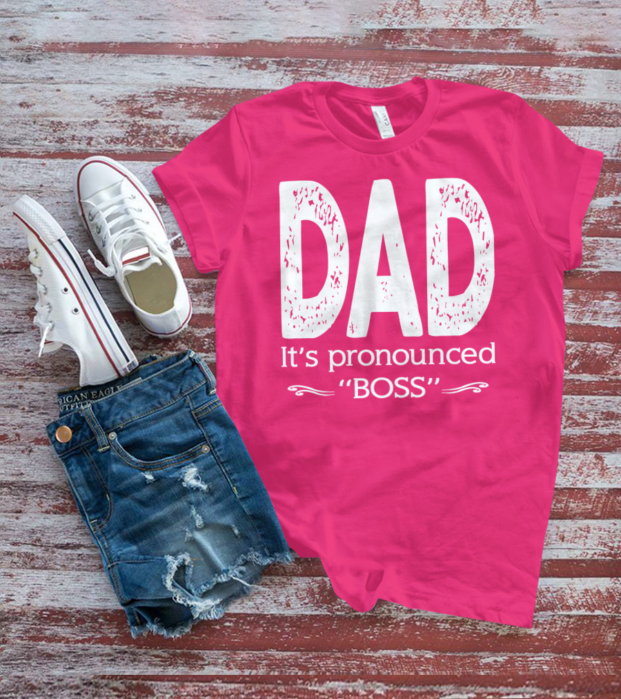 The DAD It's Pronounced BOSS Shirt offers a regular fit. Made from 100% ring-spun cotton that is pre-shrunk to help maintain size and shape after washing. Features reinforced construction details for durability. Available in U.S. standard sizes S-5XL to accommodate various body types.