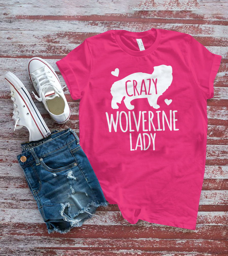 Crazy Wolverine Lady Silhouette With Hearts T-Shirt