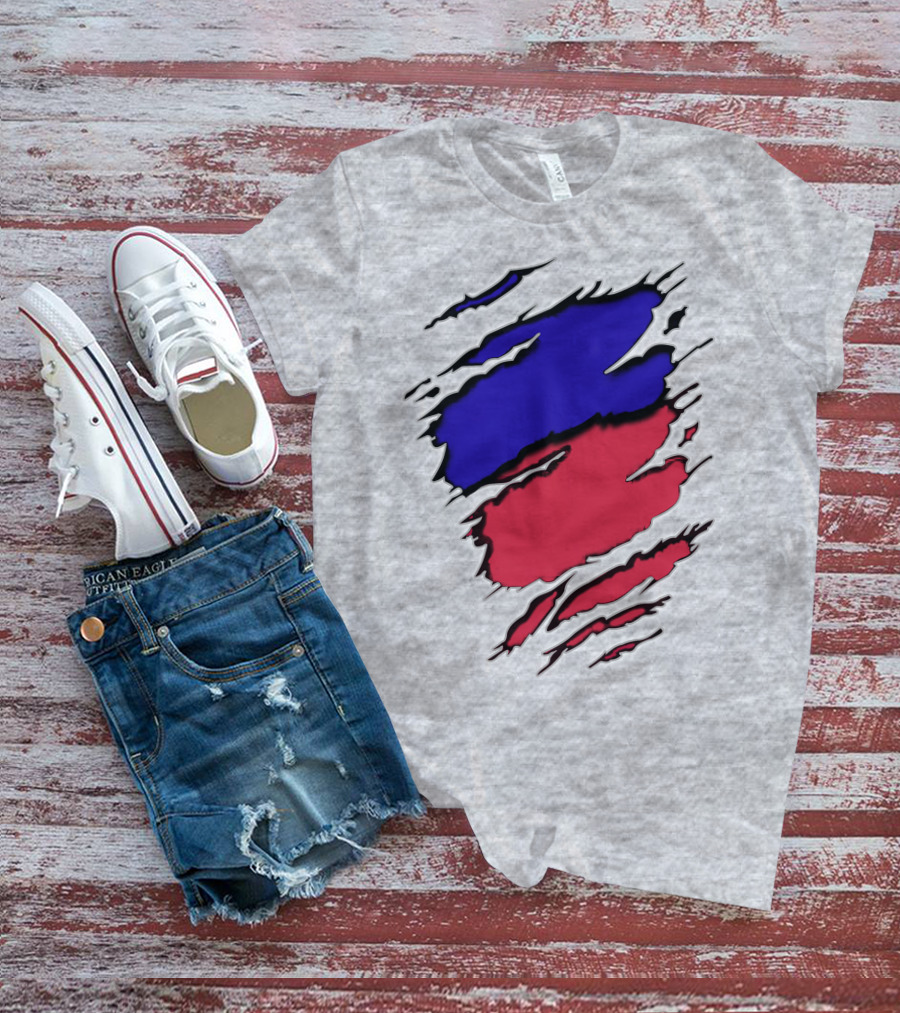 Ao Rach Two-Tone Distressed Blue Red Scratches T-Shirt