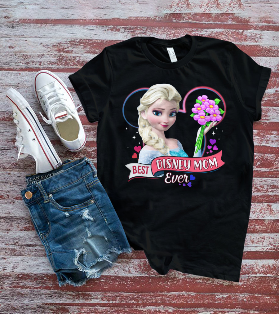 Best Disney Mom Ever Elsa Heart Flowers T-Shirt