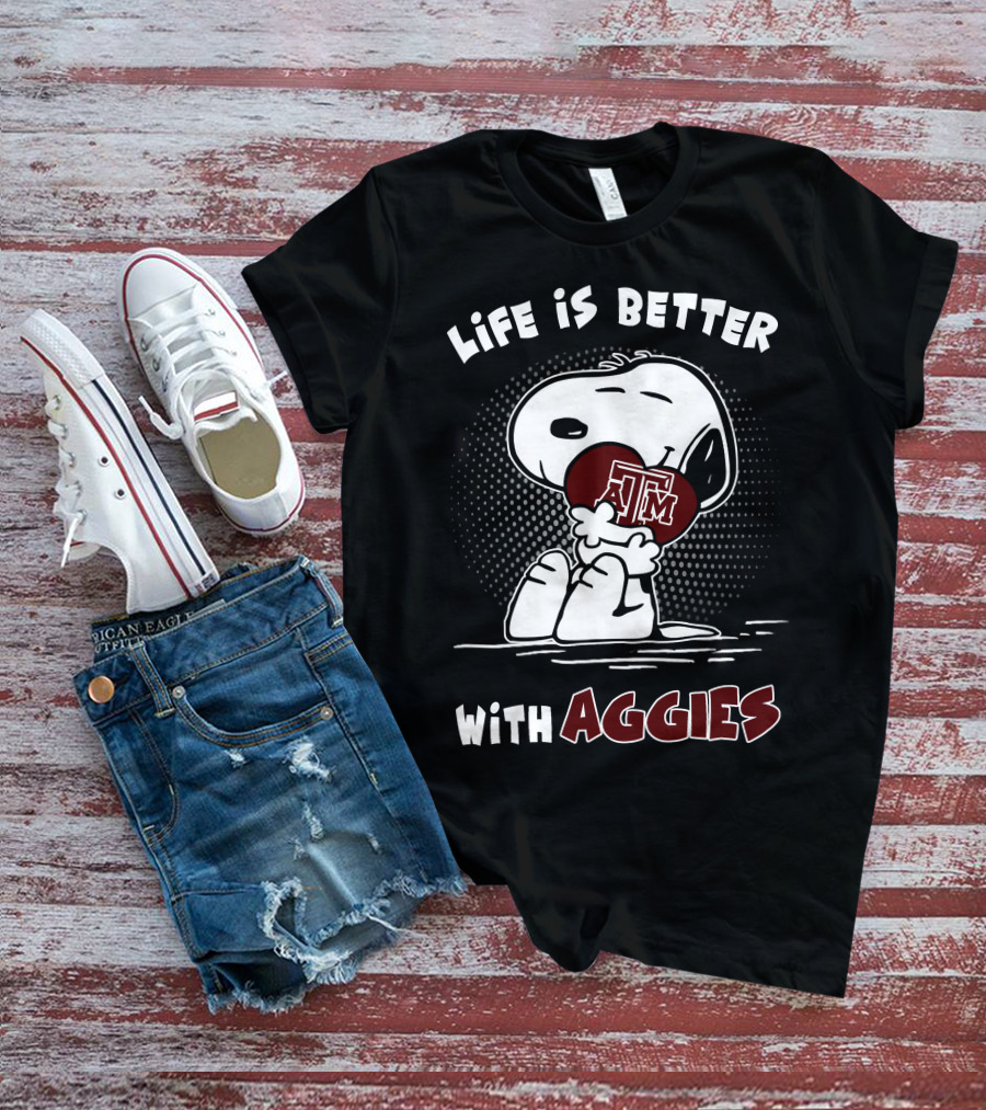 Life Is Better With Aggies Texas A&M Snoopy Hugging Football T-Shirt