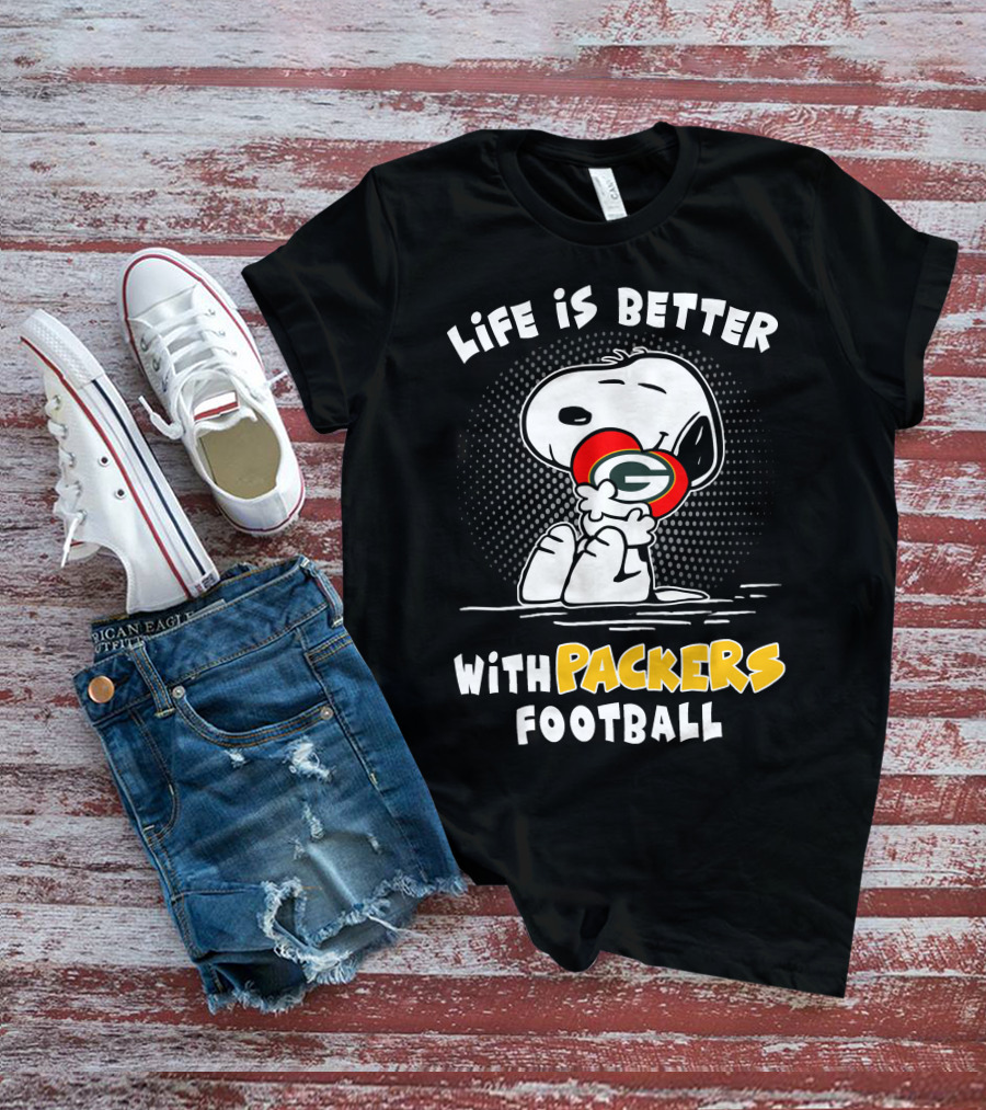 Life Is Better With Packers Football Snoopy Hugging Packers Helmet T-Shirt