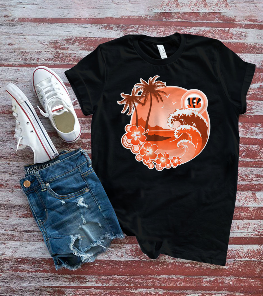 Cincinnati Bengals Holiday Hawaiian Beach Wave And Palm Flowers T-Shirt