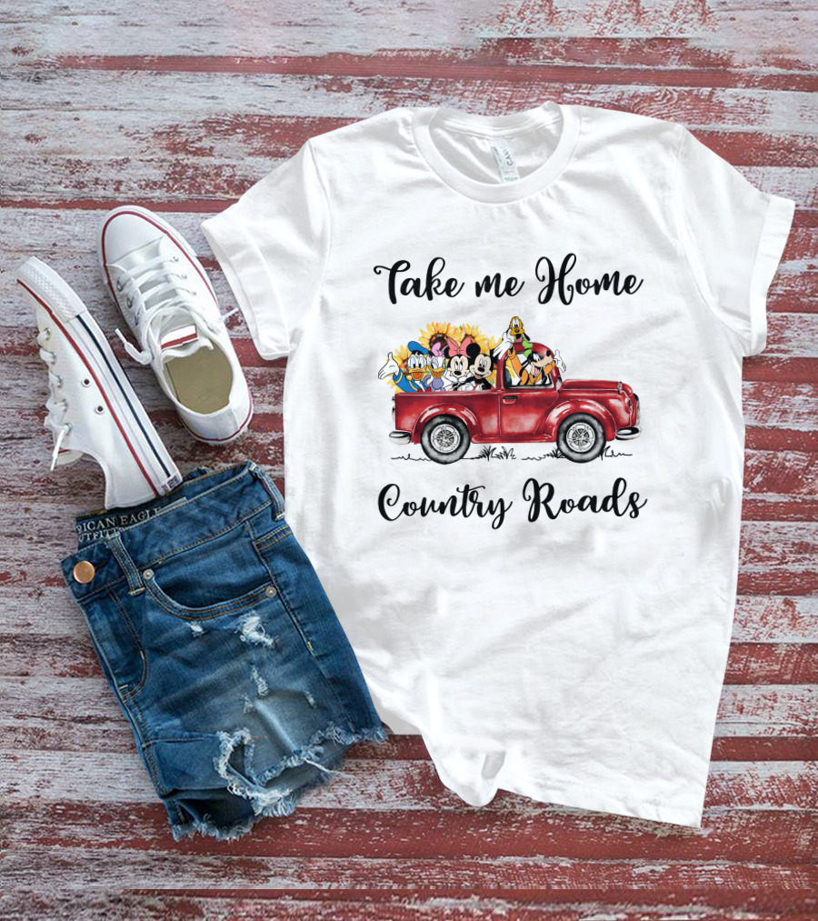 Take Me Home Country Roads Red Truck Disney Characters T-Shirt