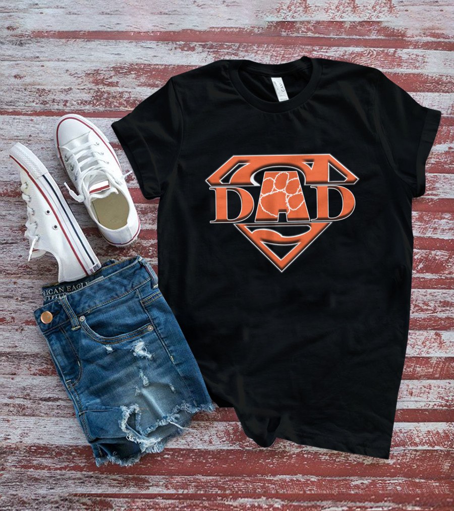 The Clemson Tigers Dad Superhero Emblem With Tiger Paw Shirt offers a regular fit. Made from 100% ring-spun cotton that is pre-shrunk to help maintain size and shape after washing. Features reinforced construction details for durability. Available in U.S. standard sizes S-5XL to accommodate various body types.