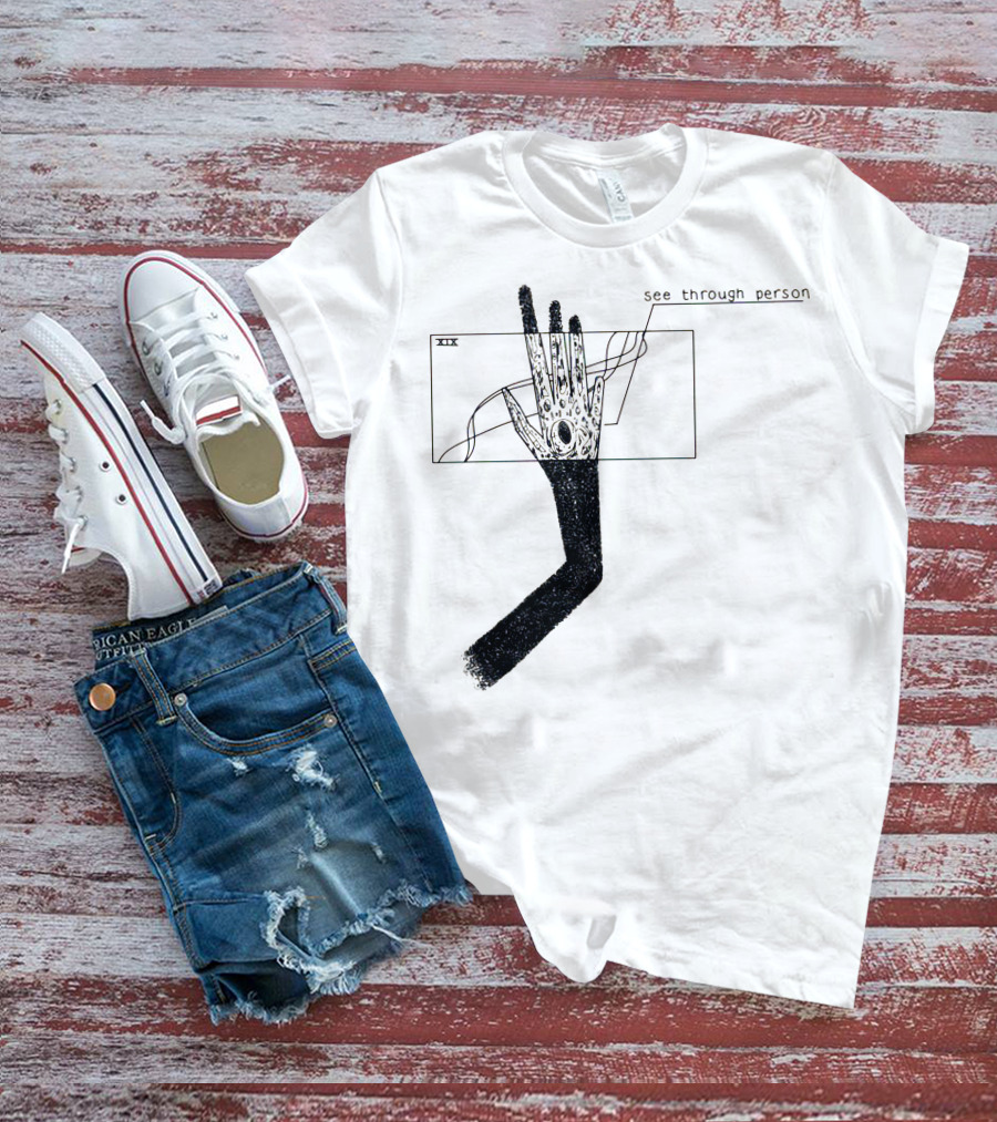 The see through person hand illustration with void design and abstract lines Shirt offers a regular fit. Made from 100% ring-spun cotton that is pre-shrunk to help maintain size and shape after washing. Features reinforced construction details for durability. Available in U.S. standard sizes S-5XL to accommodate various body types.