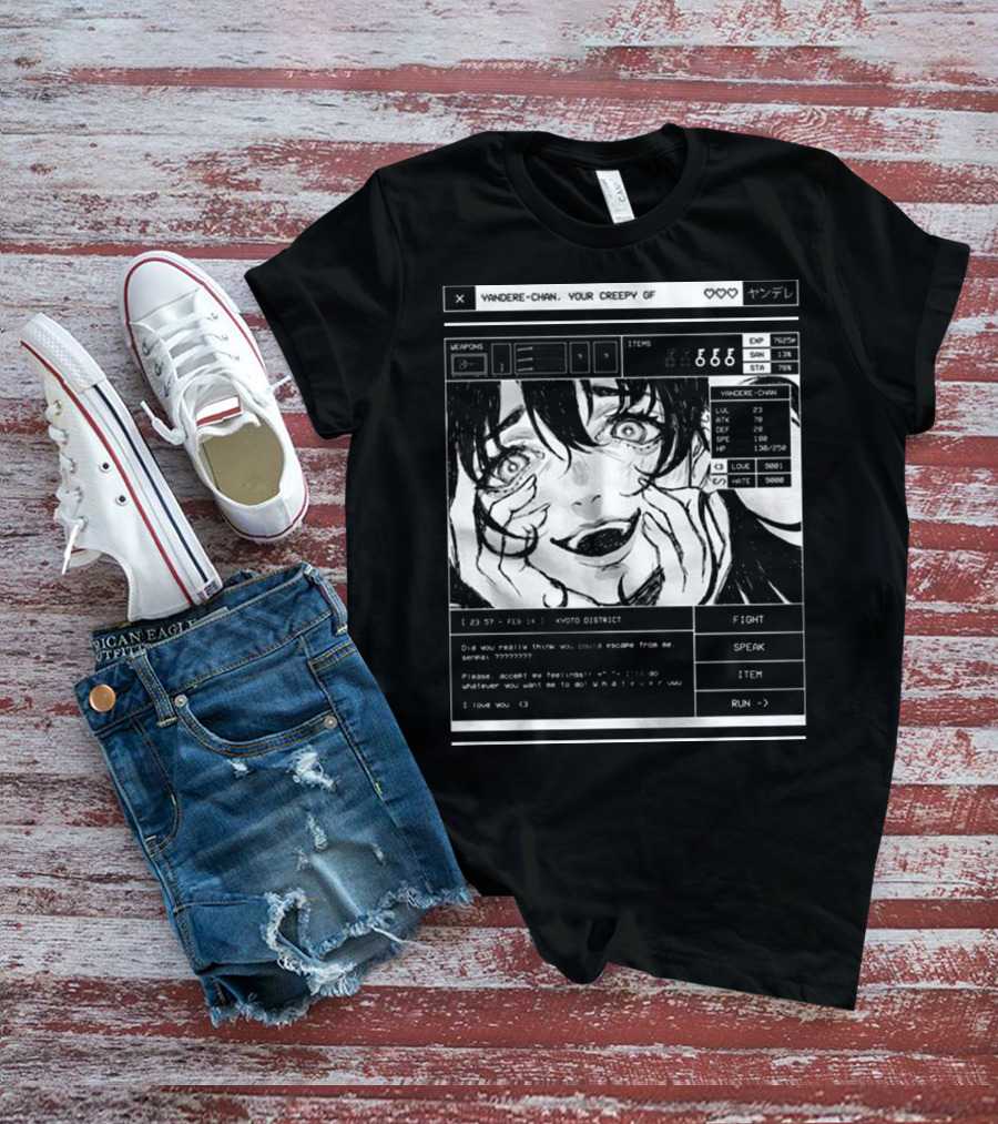 Yandere-Chan Your Creepy GF Video Game Style Art With Kyoto District Message T-Shirt
