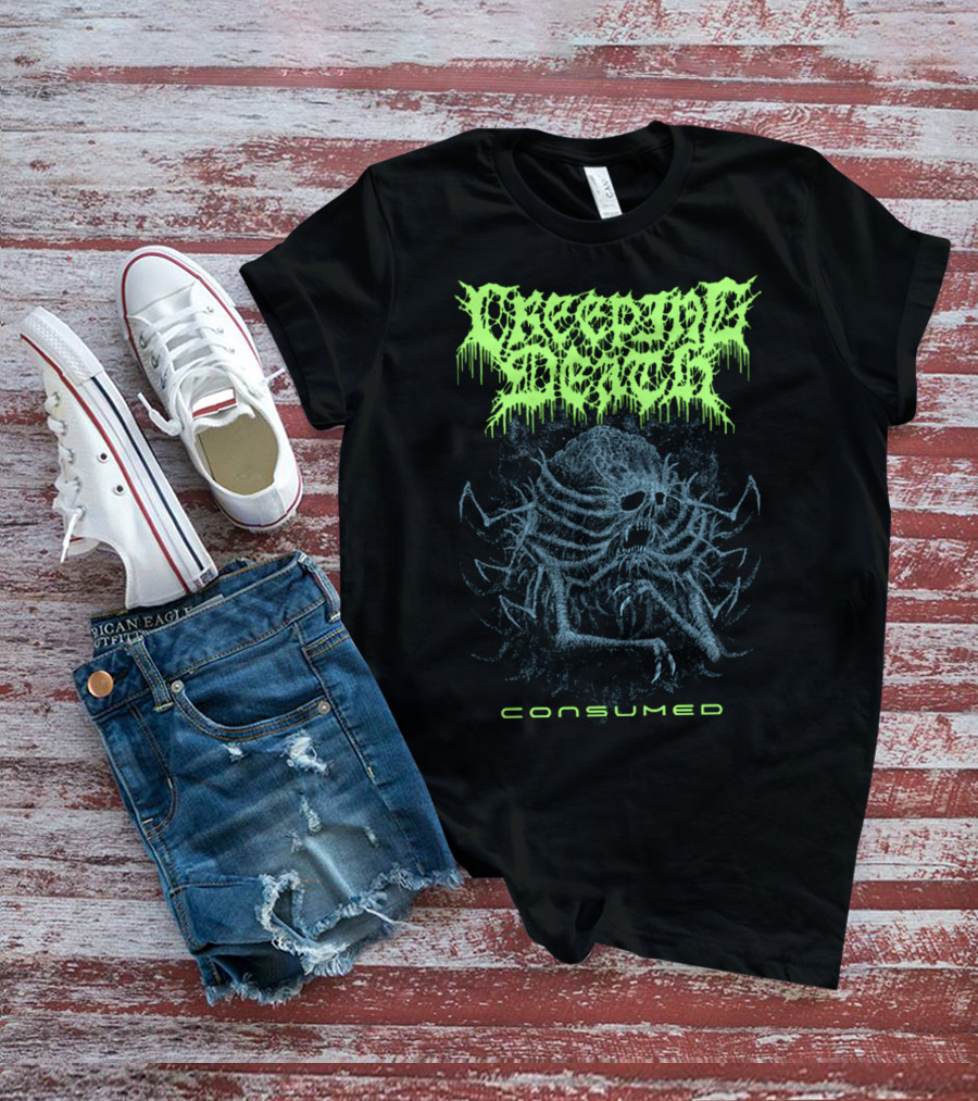 The Creeping Death Consumed Shirt offers a regular fit. Made from 100% ring-spun cotton that is pre-shrunk to help maintain size and shape after washing. Features reinforced construction details for durability. Available in U.S. standard sizes S-5XL to accommodate various body types.