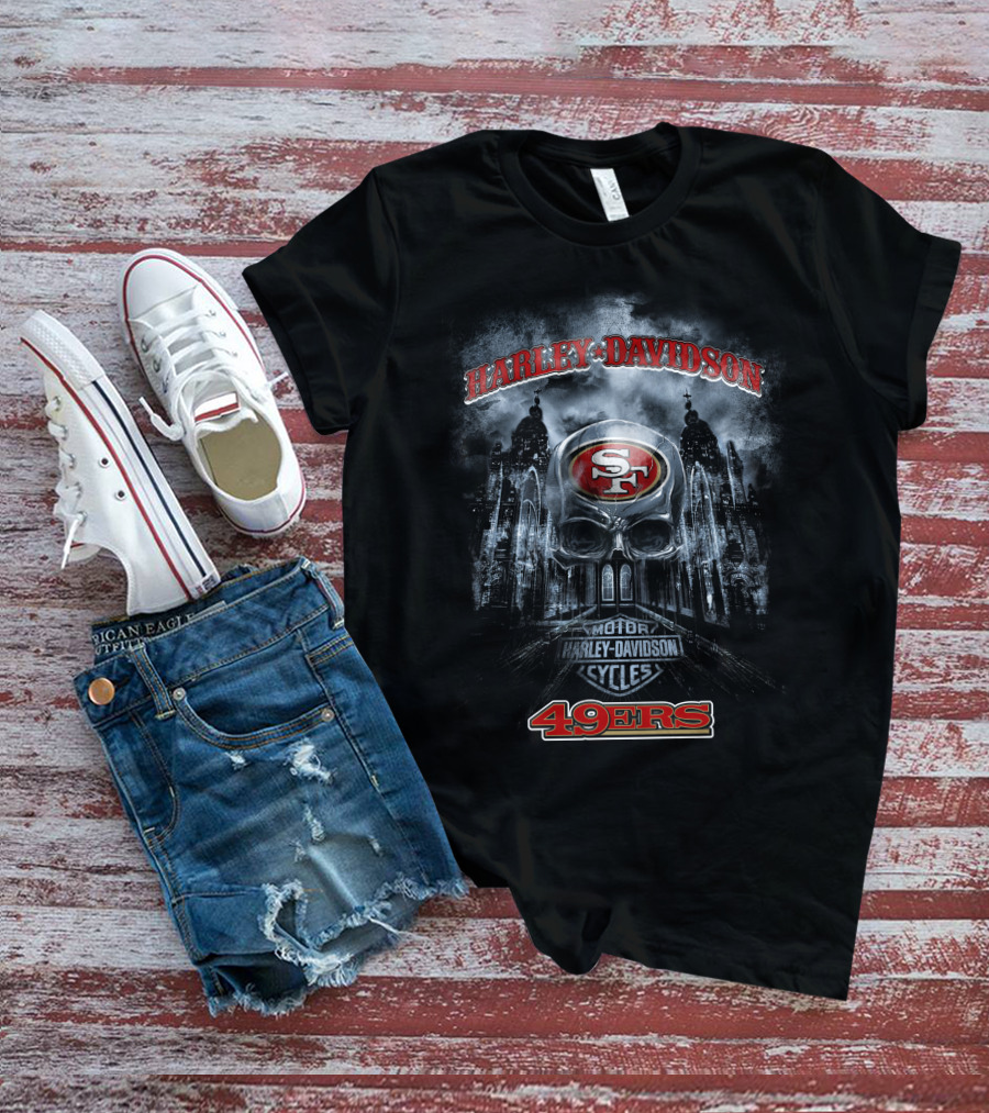Harley Davidson San Francisco 49ers Skull Motor Cycles T-Shirt