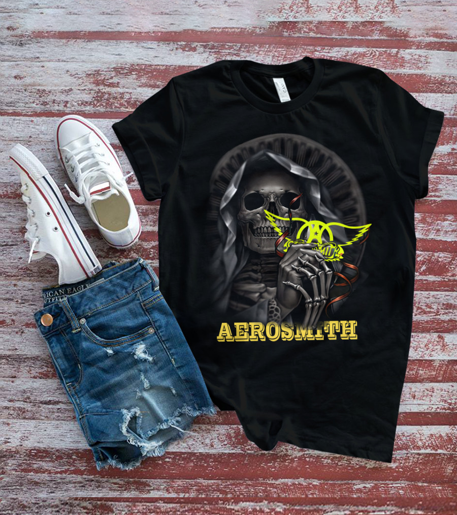 Aerosmith Grim Reaper Skull Holding T-Shirt
