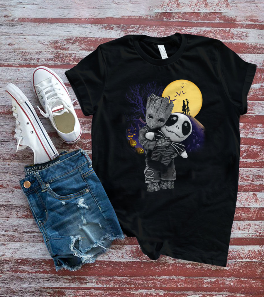Groot Hug Jack Skellington Halloween Night T-Shirt