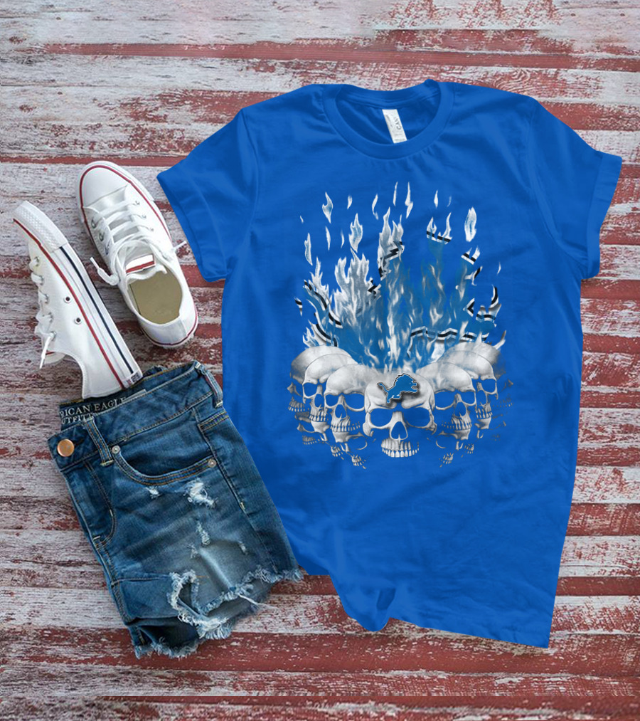 Detroit Lions 16 Flaming Skulls T-Shirt