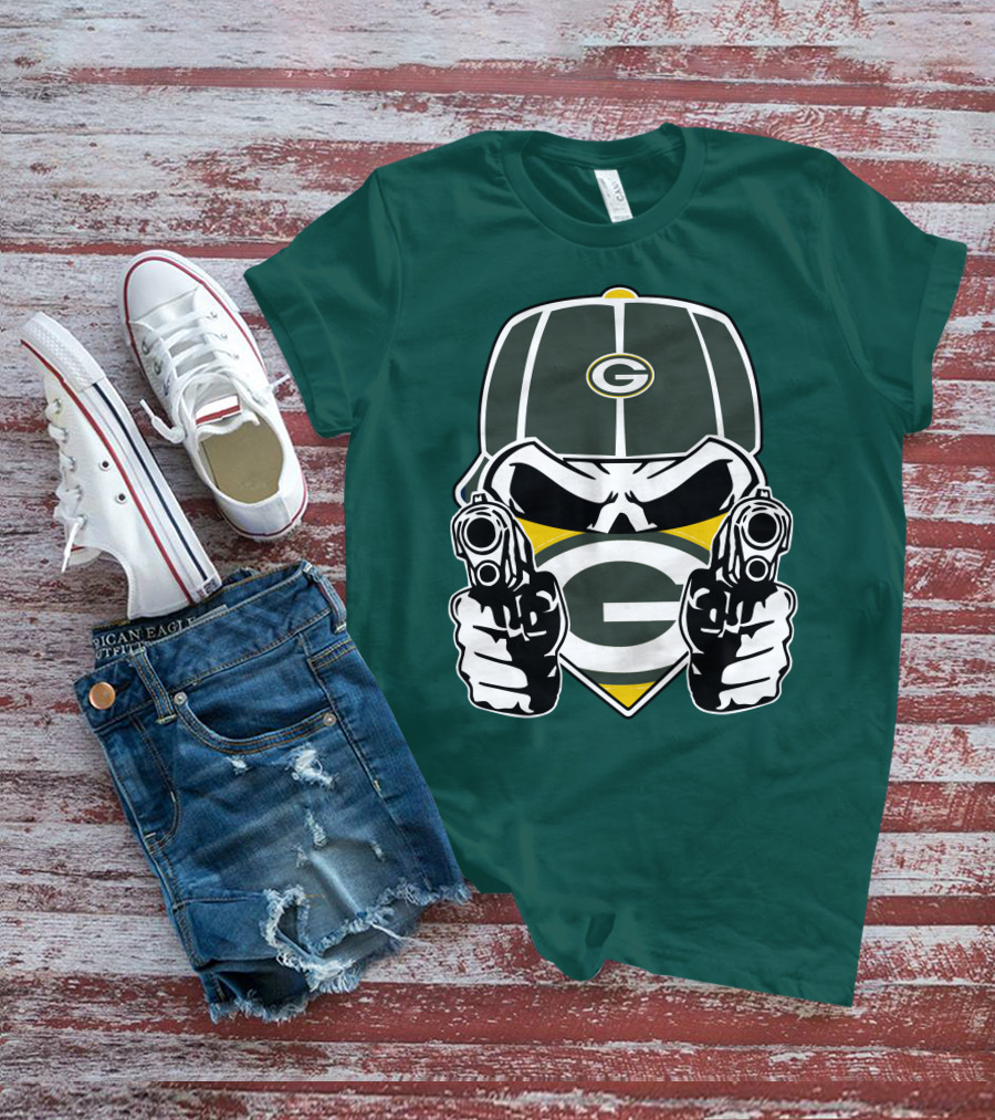 Green Bay Packers G Logo Helmet With Crossed Guns Face Mask T-Shirt