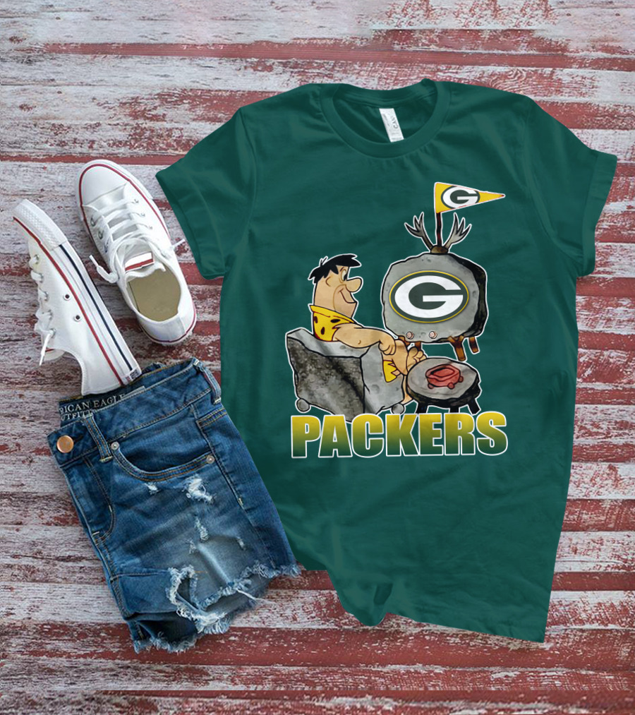 Packers Fred Flintstone Watching Tv With Green Bay T-Shirt