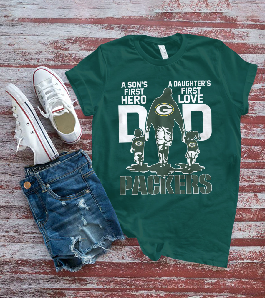 Son's First Hero Daughter's First Love Dad Green Bay Packers T-Shirt