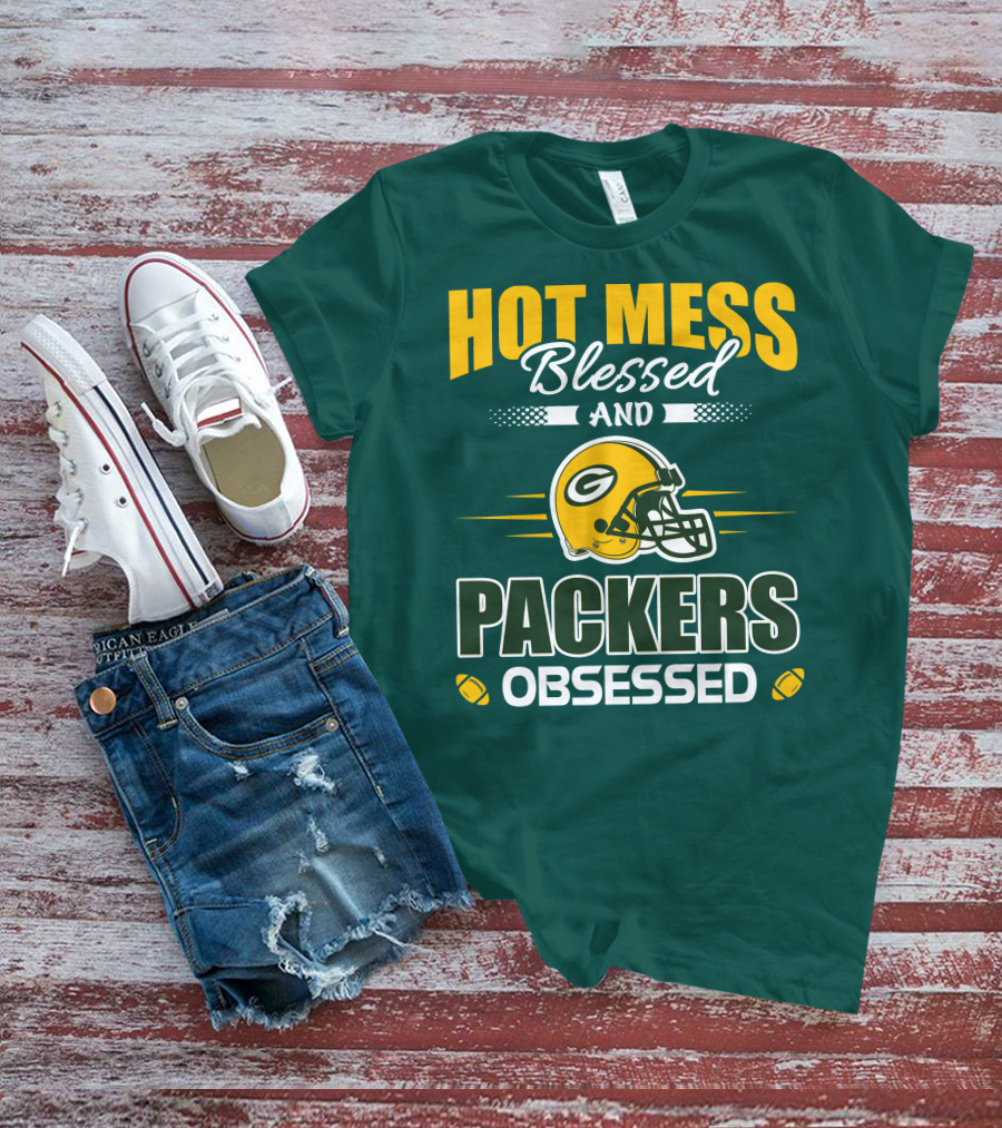 Hot Mess Blessed And Packers Obsessed T-Shirt