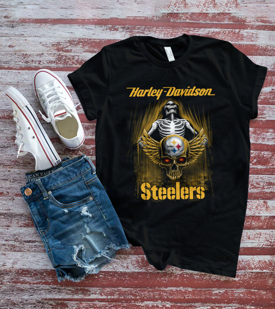 Harley Davidson Steelers Skull With Wings Skeleton T-Shirt