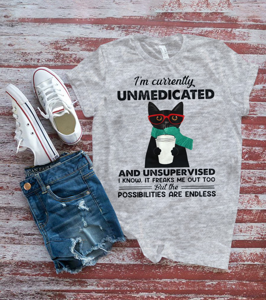 I'm Currently Unmedicated And Unsupervised Cat Possibilities Are Endless T-Shirt