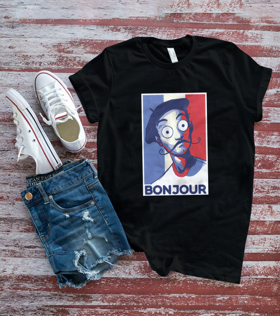 Bonjour French Beret Character With WorldofKeralis Style Tricolor Background T-Shirt