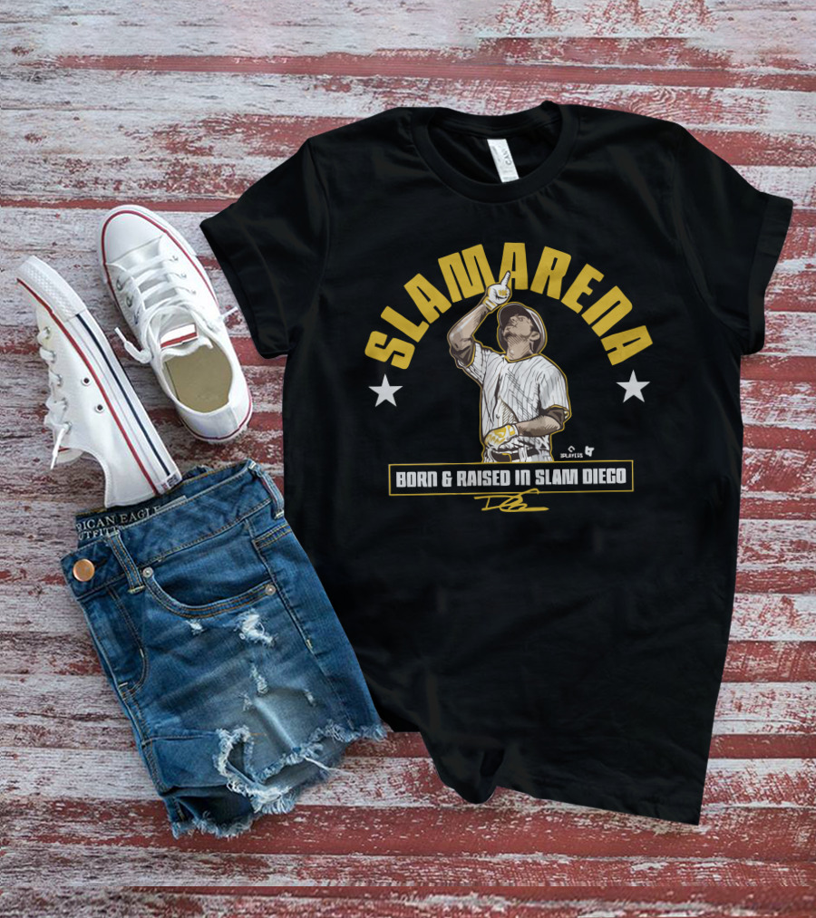 SLAMARENA Born And Raised In Slam Diego Baseball Stars T-Shirt