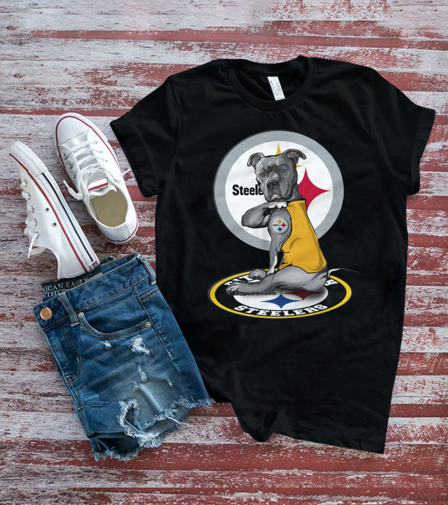Pittsburgh Steelers Dog With Logo Tattoo And Yellow Vest T-Shirt