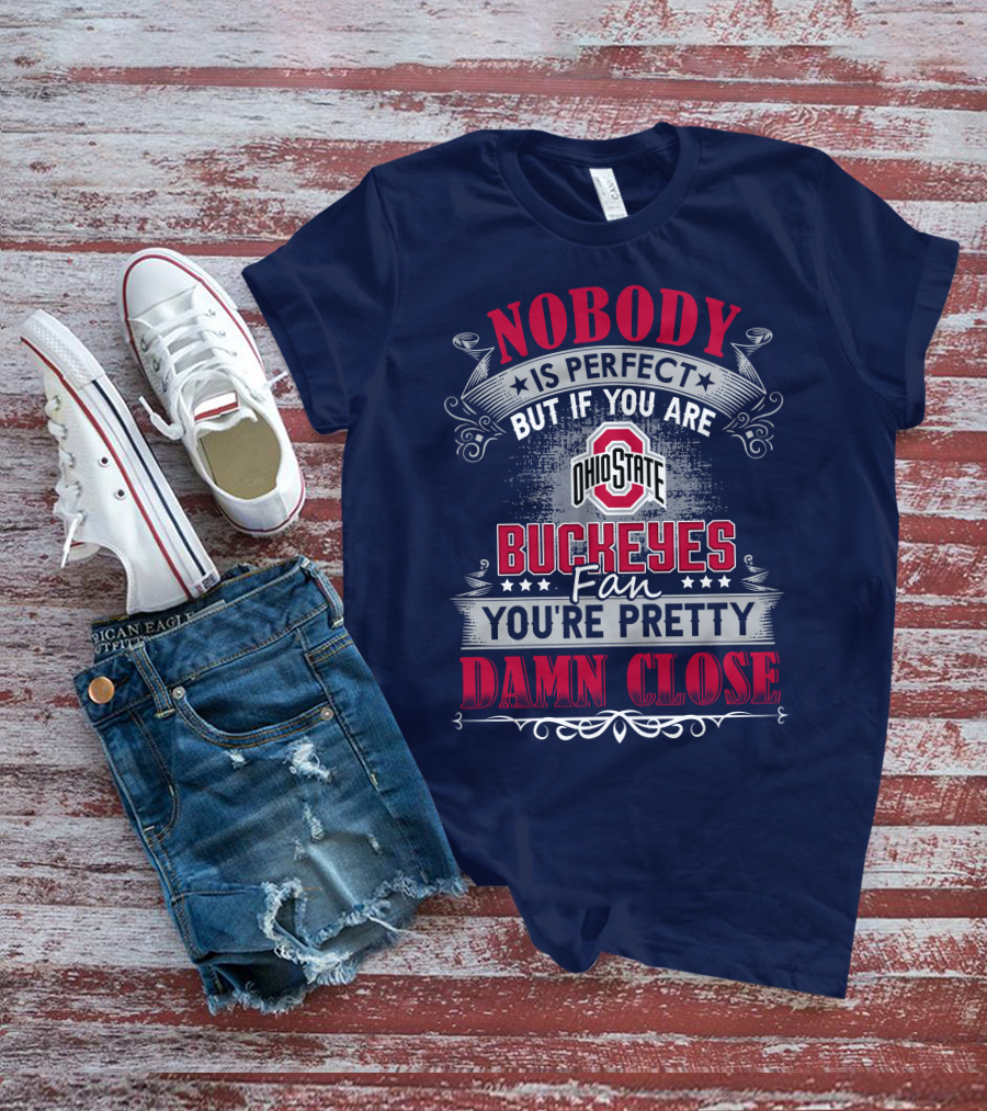 The Nobody Is Perfect But If You Are Ohio State Buckeyes Fan You're Pretty Damn Close Shirt offers a regular fit. Made from 100% ring-spun cotton that is pre-shrunk to help maintain size and shape after washing. Features reinforced construction details for durability. Available in U.S. standard sizes S-5XL to accommodate various body types.