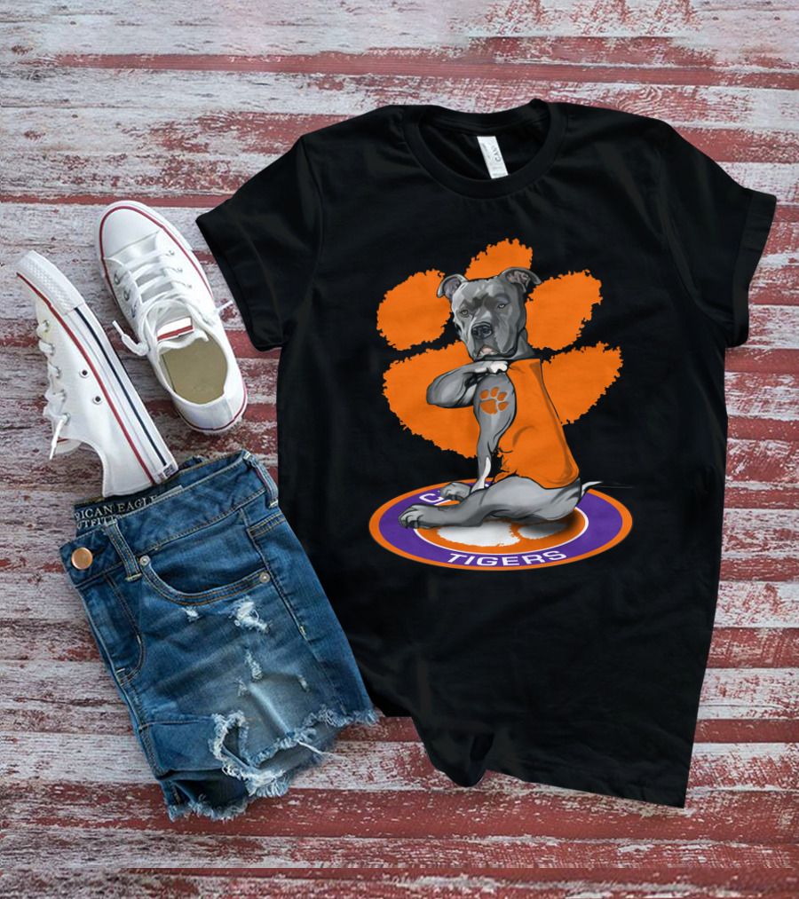Clemson Tigers Dog With Paw Print Tattoo And Orange Vest T-Shirt