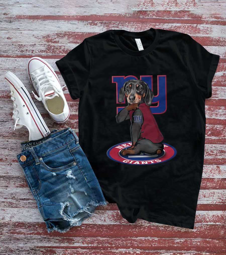 Ny Giants Dachshund Dog With Team Logo And Jersey T-Shirt