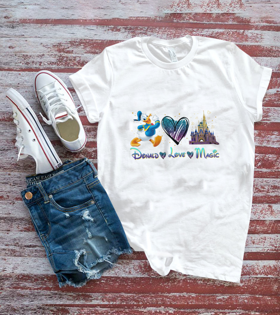 Donald Love Magic Disney Castle And Duck Heart T-Shirt
