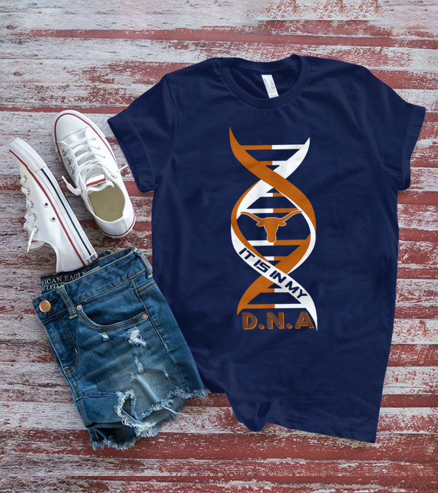 The Texas Longhorns It Is In My DNA Shirt offers a regular fit. Made from 100% ring-spun cotton that is pre-shrunk to help maintain size and shape after washing. Features reinforced construction details for durability. Available in U.S. standard sizes S-5XL to accommodate various body types.