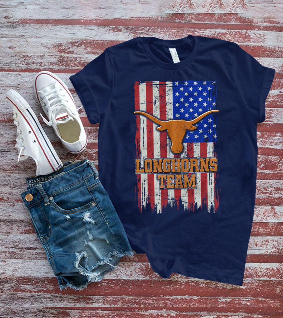 The Longhorns Team American Flag Shirt offers a regular fit. Made from 100% ring-spun cotton that is pre-shrunk to help maintain size and shape after washing. Features reinforced construction details for durability. Available in U.S. standard sizes S-5XL to accommodate various body types.