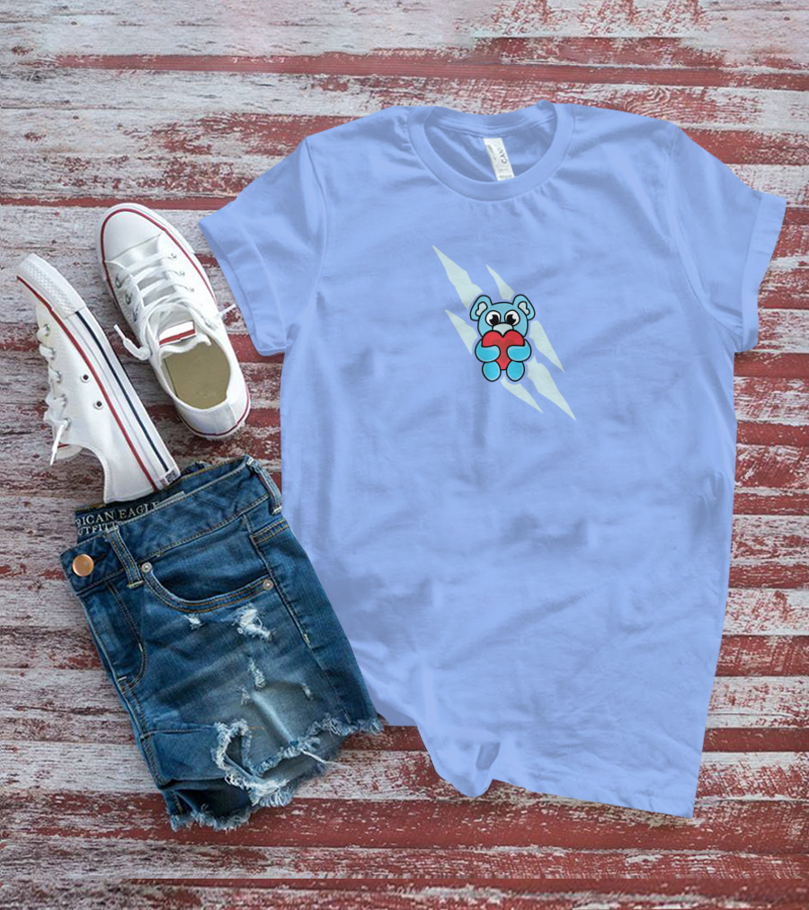 Wallibear Heart Blue Bear Holding Red Heart T-Shirt