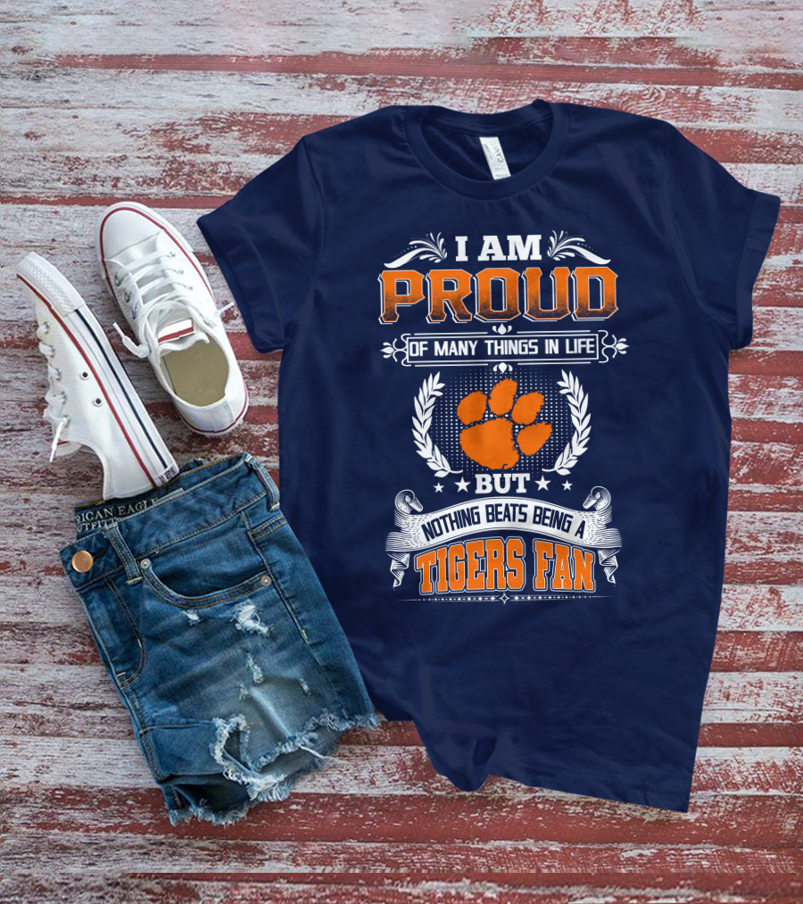 The I Am Proud Of Many Things In Life But Nothing Beats Being A Tigers Fan Clemson Tigers Shirt offers a regular fit. Made from 100% ring-spun cotton that is pre-shrunk to help maintain size and shape after washing. Features reinforced construction details for durability. Available in U.S. standard sizes S-5XL to accommodate various body types.