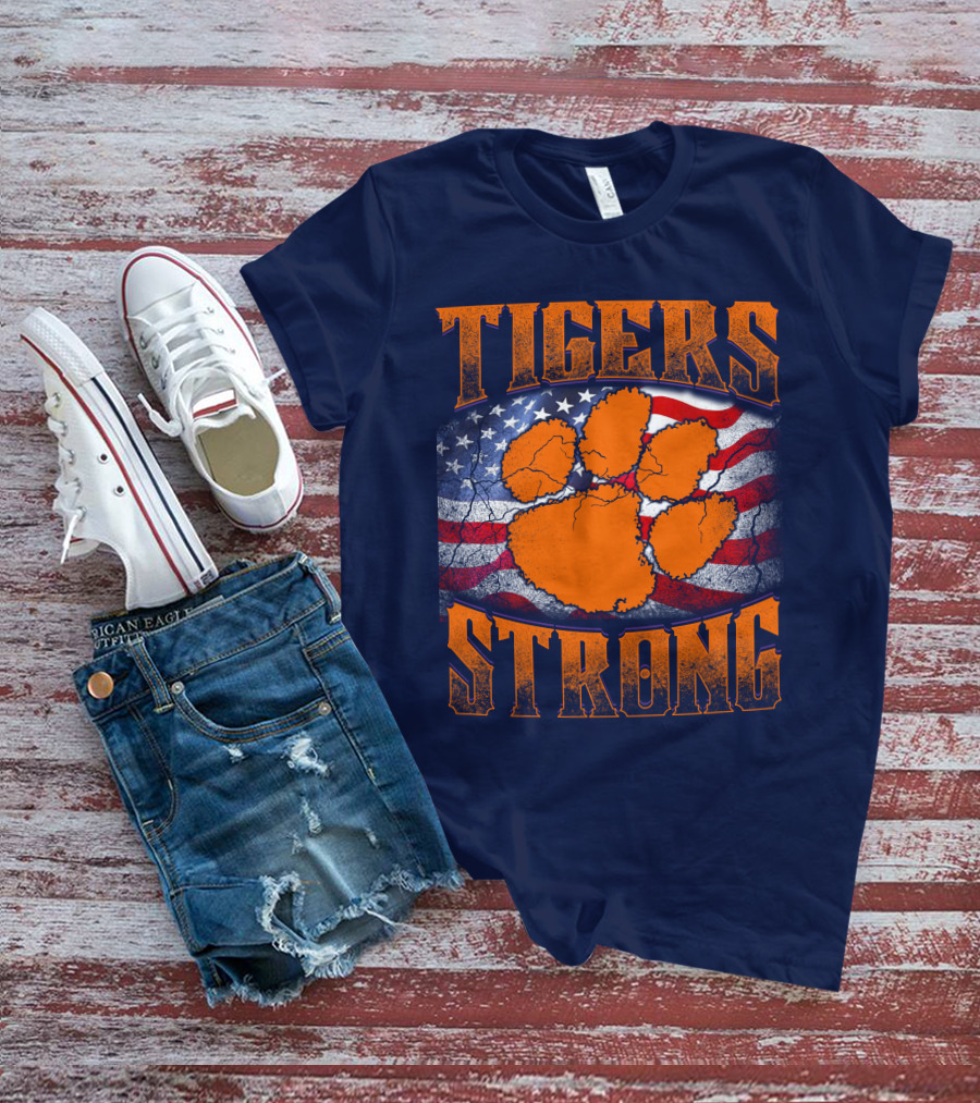 Clemson Tigers Strong American Flag Pawprint T-Shirt