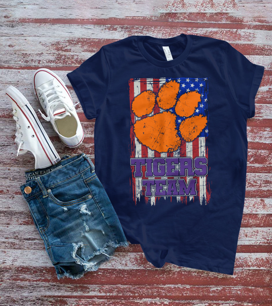 Clemson Tigers Team American Flag Paw Print T-Shirt