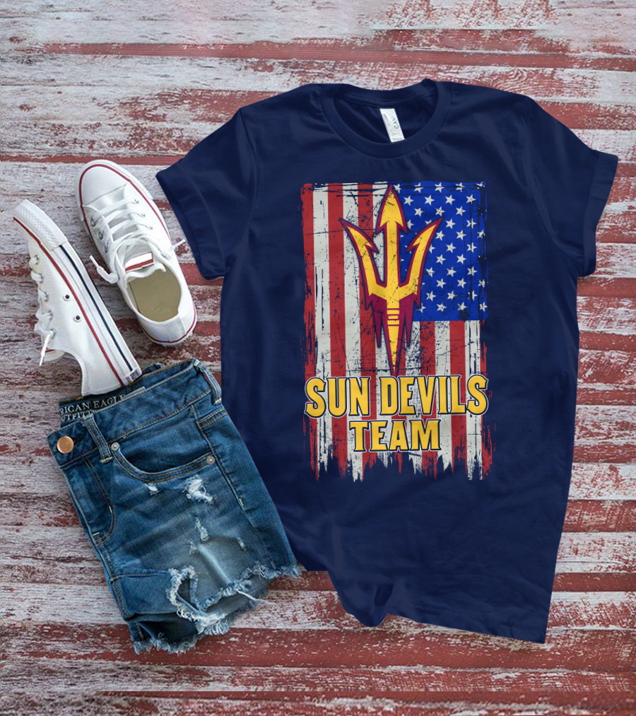 Sun Devils Team Arizona State American Flag Trident T-Shirt