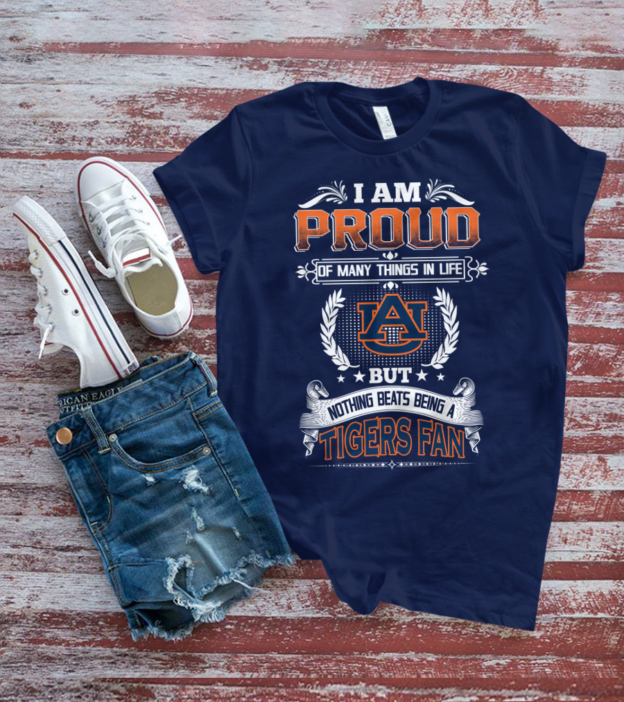 The I Am Proud Of Many Things In Life But Nothing Beats Being A Auburn Tigers Fan Shirt offers a regular fit. Made from 100% ring-spun cotton that is pre-shrunk to help maintain size and shape after washing. Features reinforced construction details for durability. Available in U.S. standard sizes S-5XL to accommodate various body types.