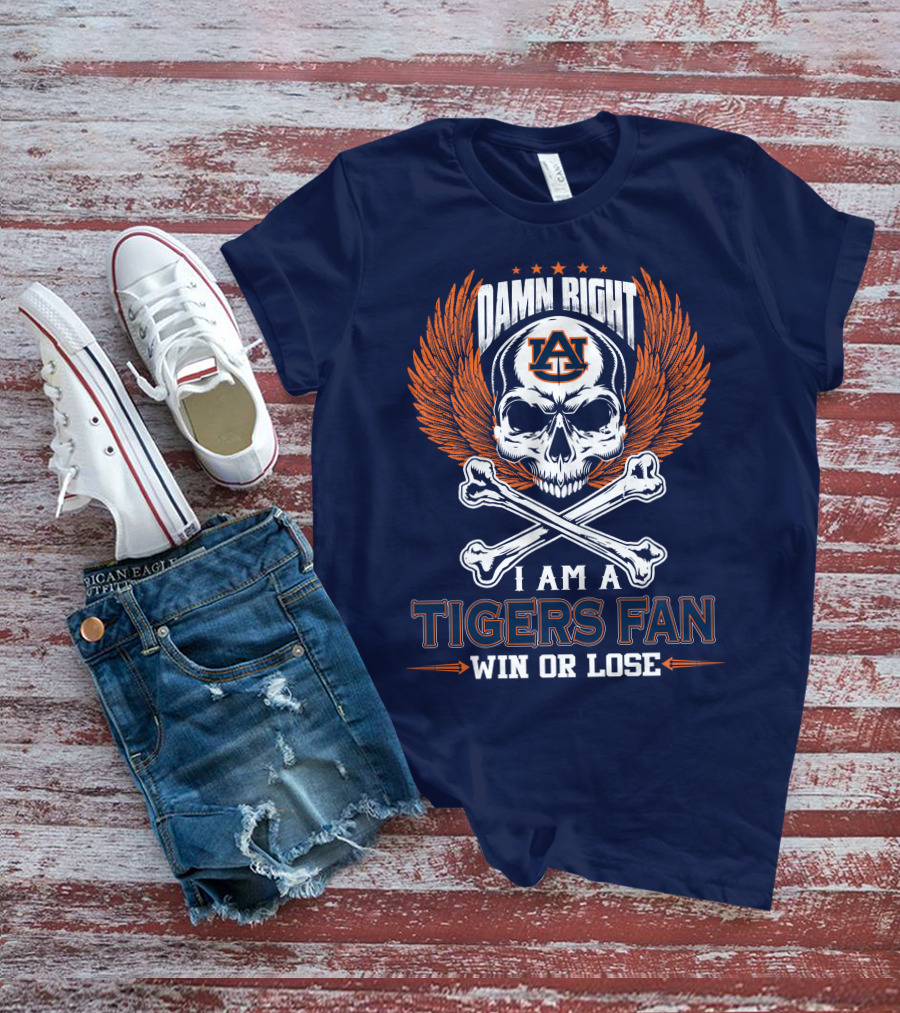 Damn Right I Am Auburn Tigers Fan Win Or Lose T-Shirt