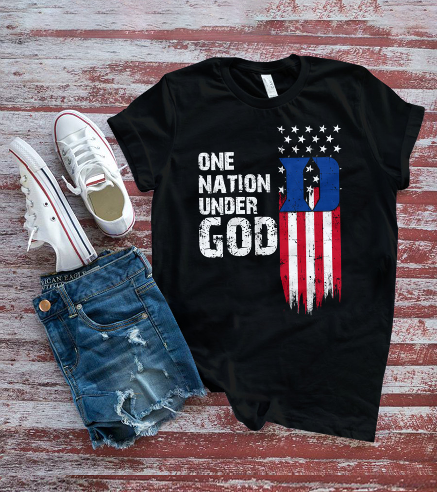 The One Nation Under God Duke Blue Devils Usa Flag Stars And Stripes Shirt offers a regular fit. Made from 100% ring-spun cotton that is pre-shrunk to help maintain size and shape after washing. Features reinforced construction details for durability. Available in U.S. standard sizes S-5XL to accommodate various body types.