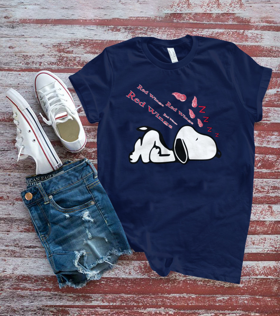 Red Wings Detroit Peanuts Snoopy Sleeping Hockey Team T-Shirt